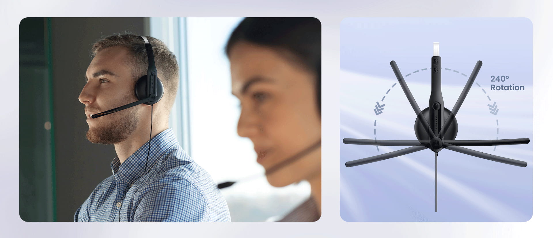 بله، به دلیل چرخش میکروفون، شما میتوانید هدست را هم روی گوش چپ و هم روی گوش راست قرار دهید و میکروفون را متناسب با آن تنظیم کنید.